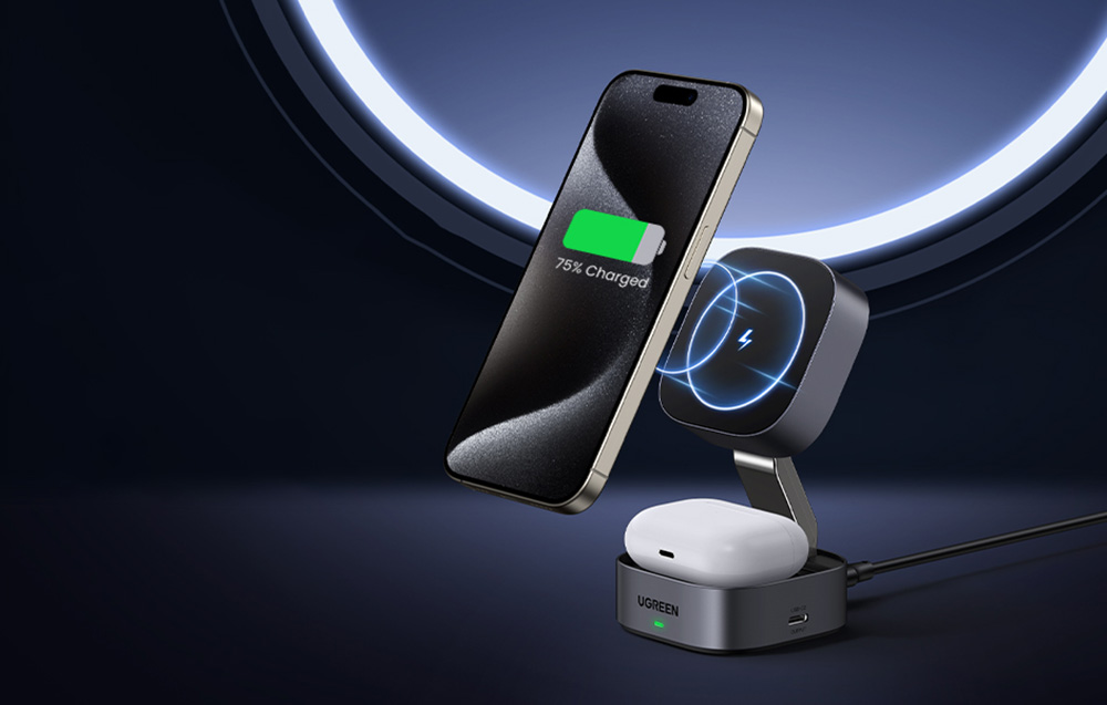 Az Ugreen W256 töltő lehetővé teszi, hogy egyszerre töltse iPhone 12-15 szériás és AirPods 2/3 Pro készülékeit. Az USB-C kimenet segítségével egy további eszközt is csatlakoztathat, így akár három eszközt is tölthet egyszerre. Ez különösen hasznos olyan helyzetekben, amikor gyorsan kell több eszközt tölteni.