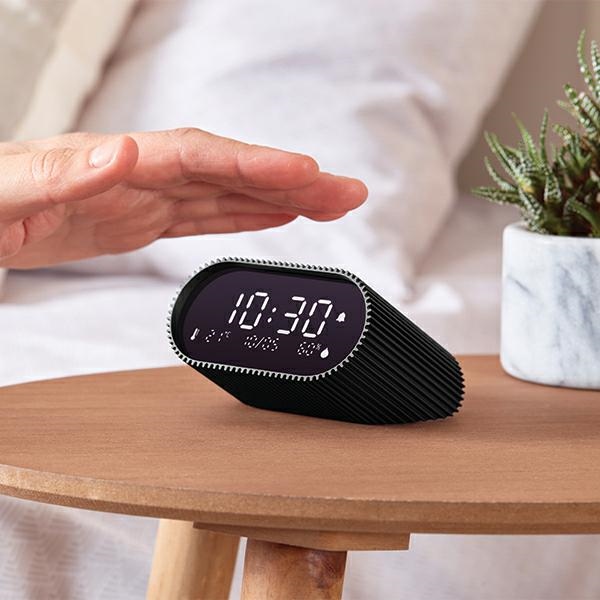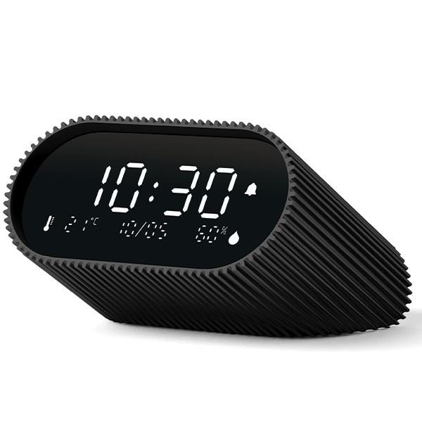 A Ray Clock egy rendkívül sokoldalú ébresztőóra, amely segít lágyan kezdeni a napot és nyugodt alvással fejezni be. Fekete VA LCD kijelzővel van ellátva, amely kiváló láthatóságot biztosít bármely napszakban, valamint hőmérséklet- és páratartalom érzékelőkkel, amelyek hasznos információkat nyújtanak a napi jóllétedhez.