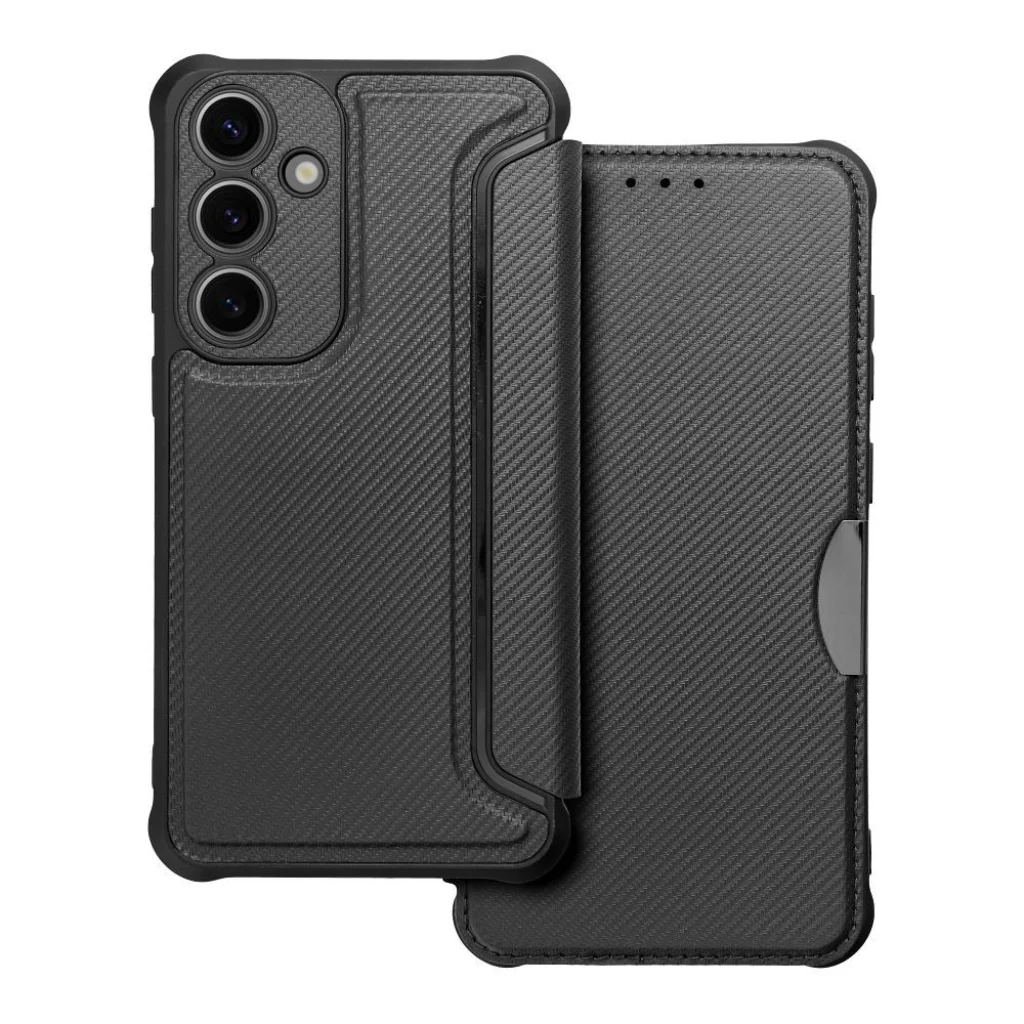 A luxus Razor fliptok a telefon biztonságának garanciája egy rangos stílusban. Megerősített szélek, puha belső anyag és mágneses zár védi a készüléket a karcolásoktól és ütésektől. Egész körű biztonság: Az egyedülálló Razor tok tökéletes kiegészítés lesz az okostelefonjához bármilyen helyzetben. Megerősített szélek, extra kamera védelem és mágneses zár biztosítják, hogy a készülék biztonságban marad és nem esik ki a tartójából, függetlenül a körülményektől. Funkcionális belső: A tok nem csak az okostelefon, hanem gyakran használt dokumentumok kényelmes tárolására is készült. A belső zseb elfér egy hitelkártya, személyi igazolvány vagy egy kis papírdarab, pl. egy bevásárlólista, így nem kell mindenhová magával vinnie a teljes pénztárcáját. Exkluzív megjelenés: A karbon, sötét színű tok a sportautók dizájnjára utal és elegáns karaktert ad a készüléknek. A belső anyag annyira puha, hogy további védelmet nyújt a kijelzőnek a sérülések ellen, míg a telefon tartását támogató gumis rész méhsejt mintázata kiemeli az egész fliptok esztétikáját. Anyag: PU bőr (külső oldal), mikroszálas anyag (belső oldal zsebbel), TPU (telefon tartását támogató belső oldal)