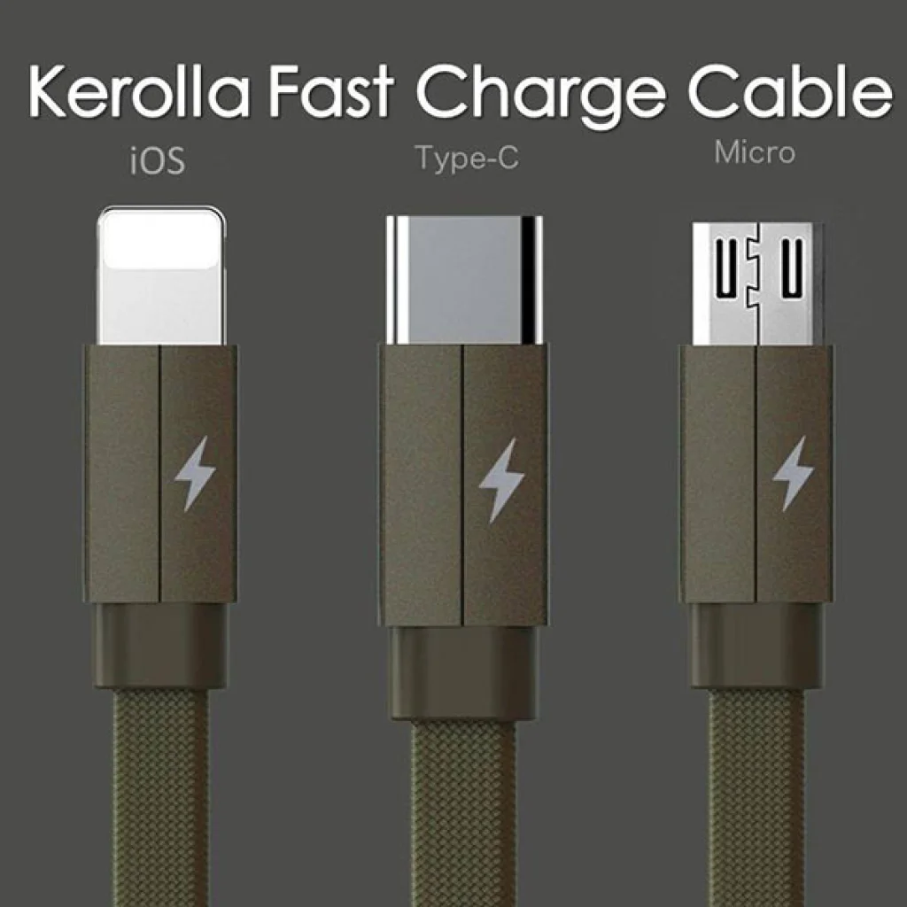 Termék leírás Három az egyben kialakítású töltőkábel szett, Micro USB, USB Type-C és Lightning csatlakozó végekkel.