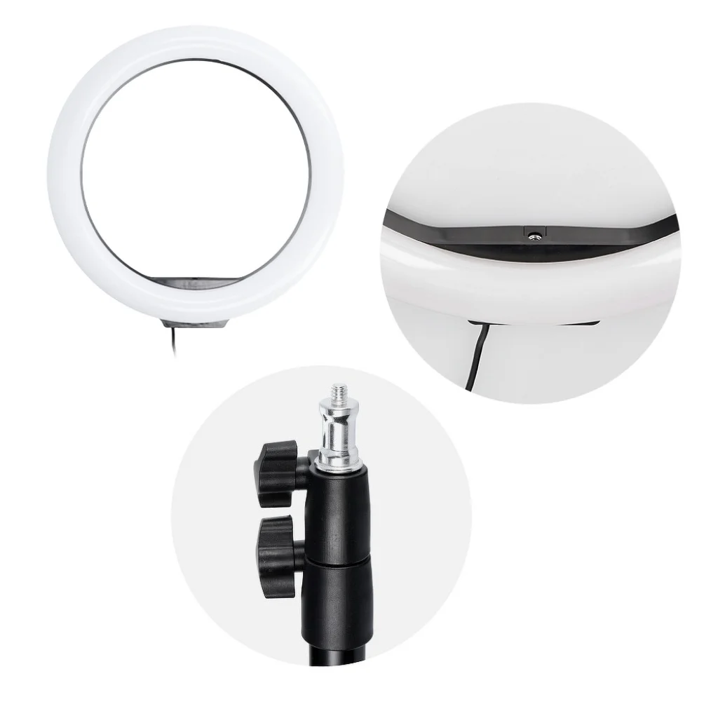 Termék leírás 12'' 30cm méretű LED körfény Állítható fényerővel USB csatlakozással az áramellátáshoz Kábelén kezelőgombokkal Telefontartóval, mely a jelenleg kapható telefonokkal kompatibilis méretű