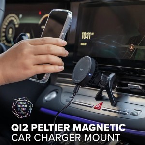 Ez a tartó a Peltier-elemek erejét kihasználva egy 3 fokozatú hűtési rendszert alkalmaz, amely hideg levegőt juttat a telefonhoz és elvezeti a hőt. Ez a fejlett technológia növeli a töltés hatékonyságát és megakadályozza a készülék túlmelegedését, különösen napfénynek kitett környezetben vagy navigációs alkalmazások intenzív használata során.