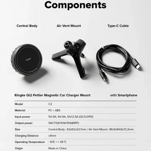 A Ringke Qi2 Peltier mágneses autós töltő és tartó a tökéletes választás azoknak, akik a legmodernebb technológiát, a gyors töltést és az intelligens hűtést keresik egy stílusos és biztonságos csomagban.