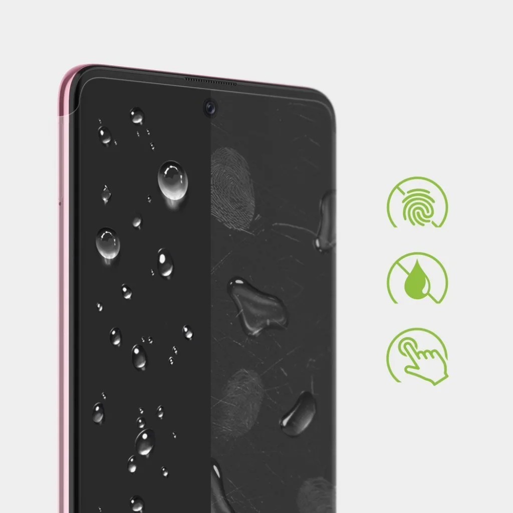 Két darabos kijelzővédő fólia szett, 4 rétegű kialakítással és Oleophób bevonattal az ujjlenyomatok által okozota szennyeződések ellen. Könnyen felhelyezhető, abszolút tok barát. Legfelső rétegének köszönhetően, kevésbé hajlamos a szennyeződések mágnesként vonzására. Nem üvegfólia!
