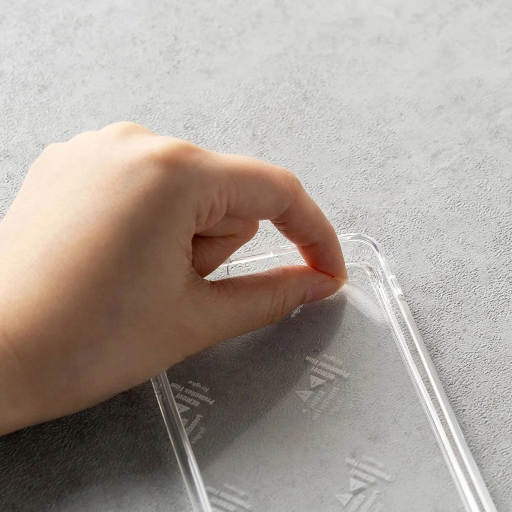 A borítás két egymáshoz kapcsolódó részből áll. A hátsó panel PC anyagból készült, merev, és felelős az egész borítás stabilitásáért. A rugalmas TPU keret befedi a telefon oldalait, elnyeli az ütés energiáját, és megvédi a képernyőt és a kamerát azáltal, hogy kiemelkedik az eszköz szélén.