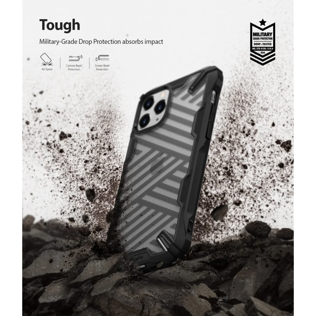 Egyedülálló kialakítású tok mely rendkívül vékony mégis strapabíró. Flexibilis PC anyaghasználattal készült, helyenként rezgés elnyelő TPU anyaghasználatból készült részekkel, megemelt perem részei pedig gondoskodik arról hogy a készülék kijelzője ne érintkezhessen közvtlenül semmilyen felülettel. Ebből kifolyólag MIL STD 810G-516.6 minősítéssel rendelkezik, mely tanúskodik arról hogy a teszt készülék a tok használatával túlélte a 2 méter magasságból történő zuhanást 26 alkalommal. Mint minden RIngke márkájú tok, úgy a Fusion is több tesztnek lett alávetve, ami biztosítja a vásárlókat hogy tökéletes illeszkedik a készülékre és kifogástalan védelmet nyújt.