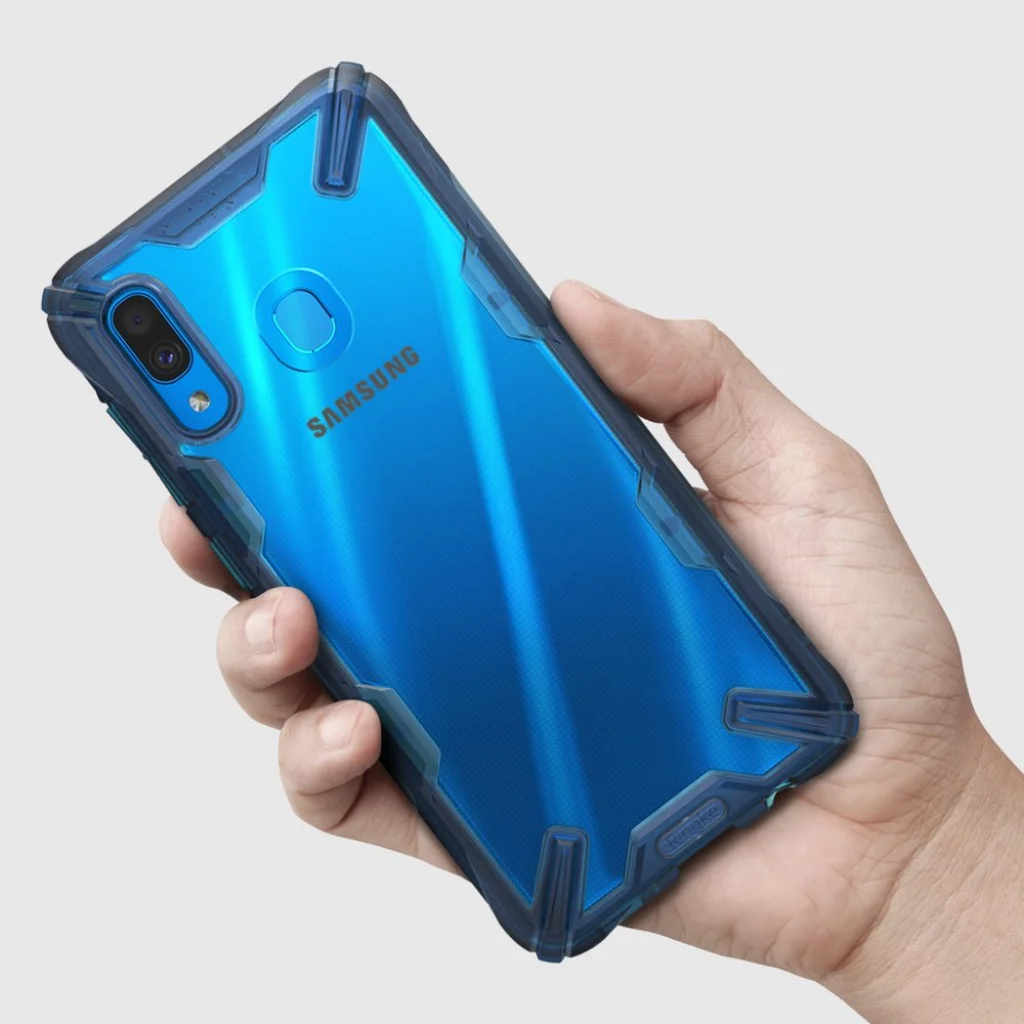 Samsung A30 tok Ringke Fusion X PC TPU kerettel kék színben