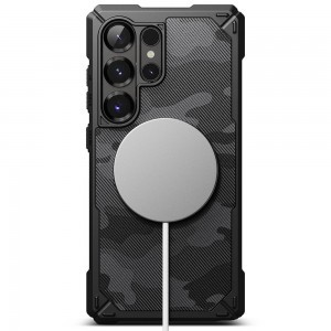 A Ringke Rugged Gear Magsafe egy olyan masszív tok, amelyet azok számára terveztek, akik maximális védelmet igényelnek készülékük számára. Tartós TPU-ból (termoplasztikus poliuretán) készült, kiváló védelmet nyújt a telefon számára esések, rázkódások és karcolások ellen, miközben biztos fogást is garantál. Stílusos megjelenése miatt ideális azok számára, akik a dizájnt és a funkcionalitást egyaránt értékelik. Az etui tökéletesen illeszkedik, és könnyű hozzáférést biztosít az összes porthoz és gombhoz. Könnyű, de nagyon tartós kialakításának köszönhetően kiválóan megfelel a mindennapi használat nehéz körülményei között. Ha megbízható védelmet keres modern megjelenéssel, a Ringke Rugged Gear megfelel az elvárásainak. A Rugged Gear egy vezeték nélküli MagSafe technológiával kompatibilis gyűrűvel van felszerelve. A mágneses gyűrű maximális töltési teljesítményt biztosít és gyors, egyszerű csatlakozást tesz lehetővé az összes MagSafe funkcióval rendelkező kiegészítőhöz.