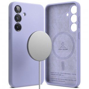 A Ringke Silicone Magsafe sorozat tokja puha és tartós termoplasztikus anyagból készült, amely vékony kialakításának köszönhetően ultrakönnyűvé teszi. A tok tökéletesen illeszkedik, és nem korlátozza a vezeték nélküli töltés lehetőségét. A szilikon egy MagSafe-kompatibilis gyűrűvel van felszerelve. A mágneses gyűrű biztosítja a maximális töltési hatékonyságot, valamint gyors és egyszerű csatlakozást minden MagSafe funkcióval rendelkező kiegészítővel. A tok nem növeli jelentősen a telefon méretét, mégis biztos és stabil fogást ad, valamint megőrzi a minimalista megjelenést. Az emelt kialakítás körül a kamera és a képernyő védelmet nyújt a karcolások ellen, enyhén megemelve a telefont a sík felülettől. Gombvédőkkel, valamint portoknak szánt kivágásokkal rendelkezik. Ideális választás minimalista felhasználóknak, akik kiemelkedő minőségű kivitelezést keresnek anélkül, hogy növelnék az eszköz térfogatát vagy tömegét.
