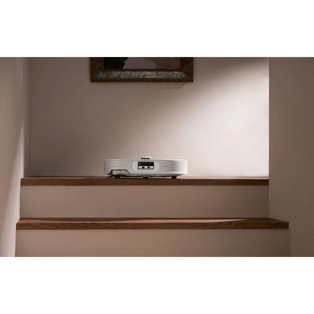 Az oldalkefe és a jobb oldali felmosóbetét speciális kialakítása lehetővé teszi, hogy a falak közelében és a sarkokban is hatékonyan tisztítson. Ez biztosítja, hogy a robot alaposan takarítson anélkül, hogy a felület bármely részét kihagyná, és ne hagyjon port vagy csíkokat a szegélyeknél. A Clean Along Floor Direction funkció lehetővé teszi, hogy a készülék a padlóburkolat mintázatának megfelelően állítsa be a haladási irányt. Ennek eredményeként jobban eléri a réseket, és kíméletesebb a fapadlóhoz.