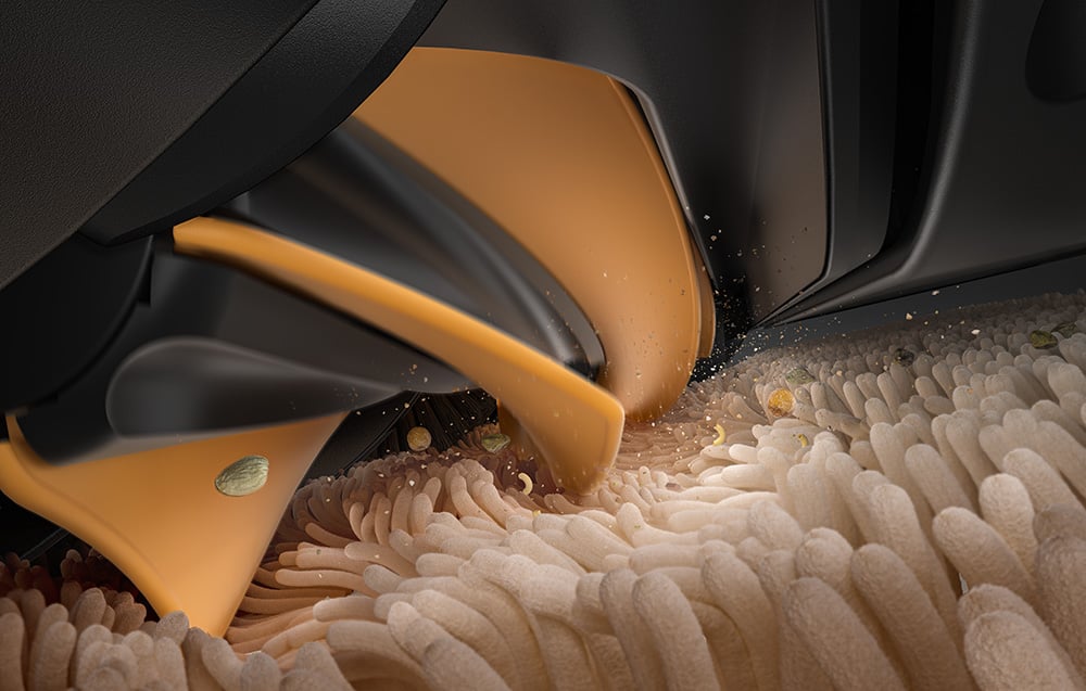 A HyperStream DuoBrush rendszer 2 keféből áll: az egyik TPU-ból készült, a másik pedig gumiból. Mindkét kefe ellentétes irányban forog a különböző felületek hatékony tisztítása érdekében. A kefék kialakítása lehetővé teszi a szőnyegszálakban és a csempék közötti terekben található szennyeződések eltávolítását. Ráadásul nem keltenek zavaró zajt, és sebességüket automatikusan az észlelt felülethez igazítják - 1000 fordulat/perc kemény padlóhoz és 1200 fordulat/perc szőnyeghez. Ezenkívül hatékonyan csökkentik a szőr és a szőrszálak belegabalyodását, csökkentve a kézi tisztítás szükségességét.