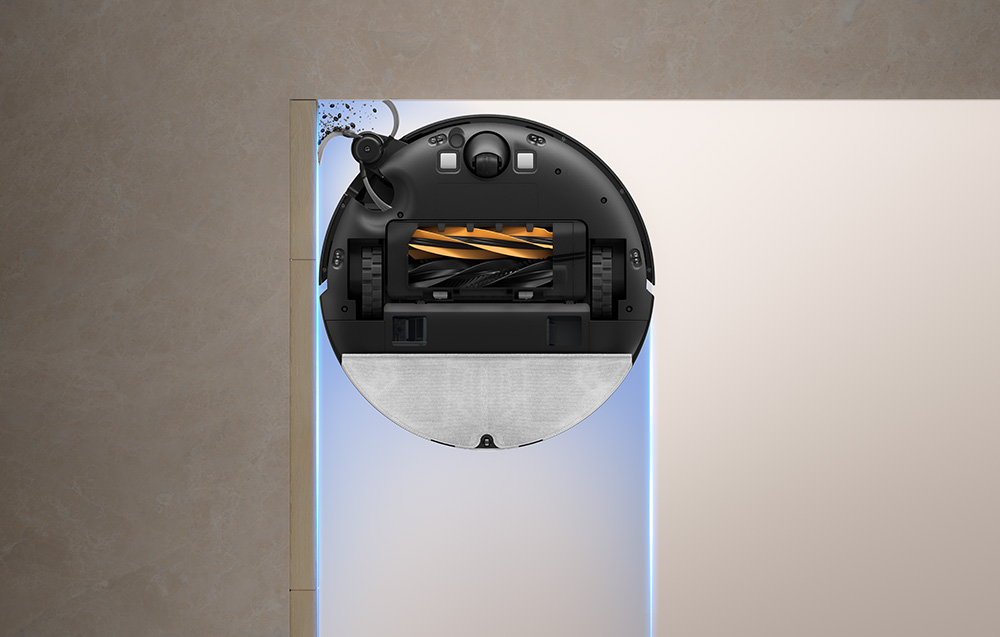 Vékony kialakításának és kihúzható oldalkeféjének köszönhetően a robot eléri a sarkokat, a bútorok alatti tereket és a falak melletti éleket. Ennek eredményeképpen hatékonyan távolítja el a port és a szennyeződéseket olyan helyeken, ahová más eszközök nem jutnak el. Emellett az ultrahangos érzékelő automatikusan érzékeli a szőnyegek jelenlétét, majd növeli a szívóteljesítményt, így biztosítva a mélyen beágyazódott szennyeződések alapos eltávolítását.