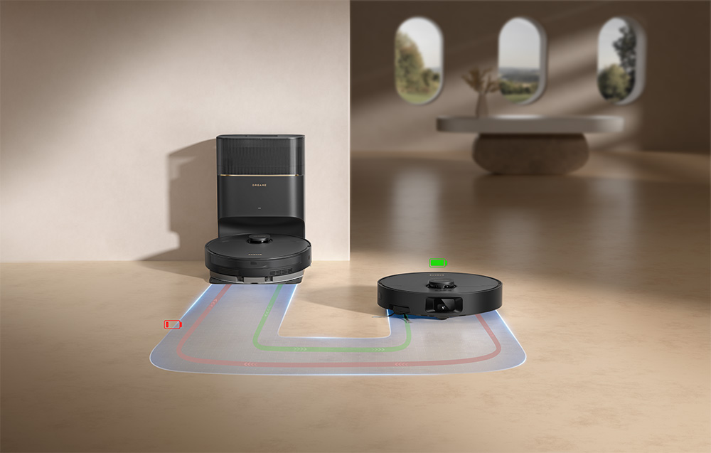 Az 5200 mAh-s akkumulátor akár 285 perc folyamatos működést biztosít. Ha lemerül, a robot automatikusan visszatér a töltőállomásra, és feltöltés után ott folytatja a takarítást, ahol abbahagyta. Ez a megoldás biztosítja a zökkenőmentes és folyamatos működést még nagy terekben is.