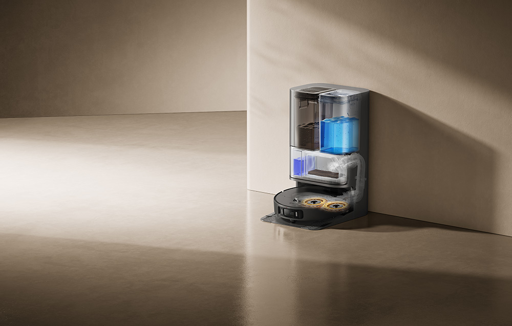 A robotporszívó bázisállomása nemcsak kimossa és megszárítja a felmosópárnákat, hanem 75 °C-os forró vízzel fertőtleníti is azokat. Ez különösen fontos, ha olyan otthonban szeretné fenntartani a higiéniát, ahol gyermekek, allergiások vagy háziállatok élnek. A 4 vízadagolási szintnek és az intelligens szennyeződéselemzésnek köszönhetően minden felmosási ciklus az aktuális körülményekhez igazodik - felesleges erőforrás-fogyasztás nélkül. A tartály automatikus feltöltéséhez és ürítéséhez vízcsatlakozó készletet is vásárolhat.