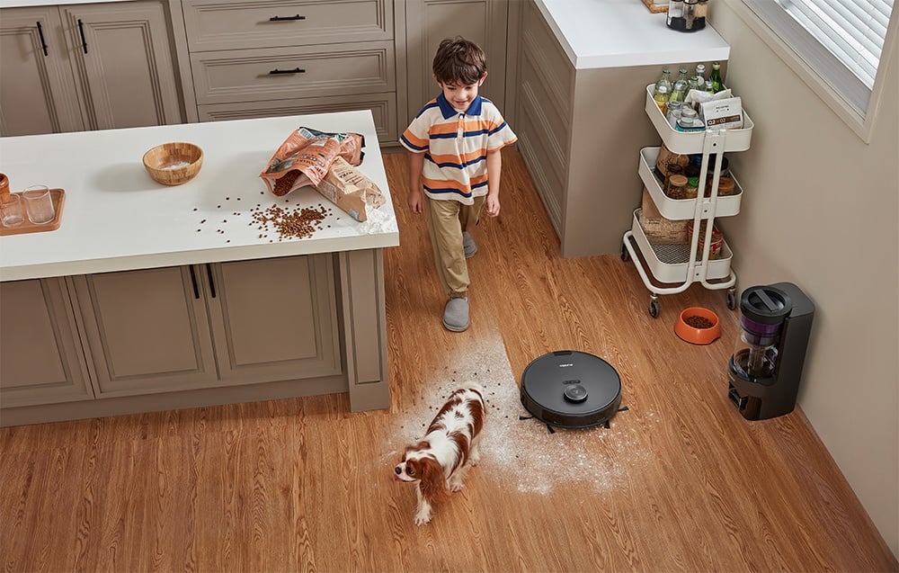 Az E10s kiváló választás azok számára, akiknek háziállatuk van. A nagy szívóteljesítménynek és a porleválasztó rendszernek köszönhetően a robot hatékonyan távolítja el a szőrszálakat és az allergéneket a padlóról és a szőnyegekről. Az automatikus felmosófelület-emelő funkció és az alapos porszívózás minimálisra csökkenti a másodlagos felületi szennyeződések kockázatát.