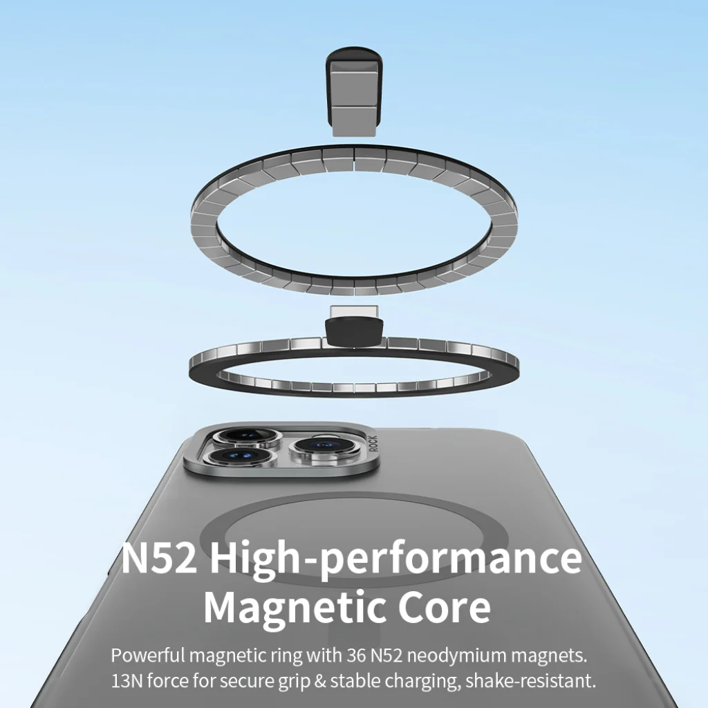 Bőrhatású érintés & mágneses tapadás | Ütésálló védelem - Erős mágneses vonzás – erős mágneses gyűrű 36 N52 neodímium mágnessel, amely 13N erőt biztosít a biztonságos fogás és stabil töltés érdekében, még mozgás közben is.