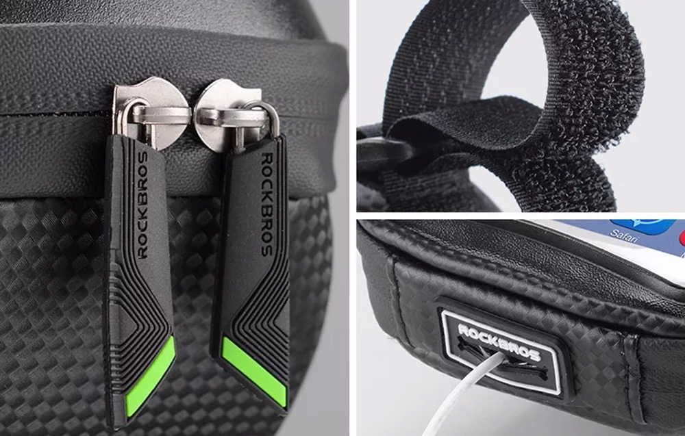 A Rockbros 010-4BK az űrtartalma révén megkülönböztethető, így könnyedén tárolhat olyan tárgyakat, mint a kulcsok, lakat, zseblámpa vagy bicska. Továbbá a termék telefontartóként is funkcionál, és lehetővé teszi a kényelmes navigálást vezetés közben vagy zenehallgatást. Az átlátszó képernyőablak érzékeny az érintésre, és gyors reakciót garantál a készüléktől, míg a napellenző biztosítja a jó láthatóságot erős fényben.