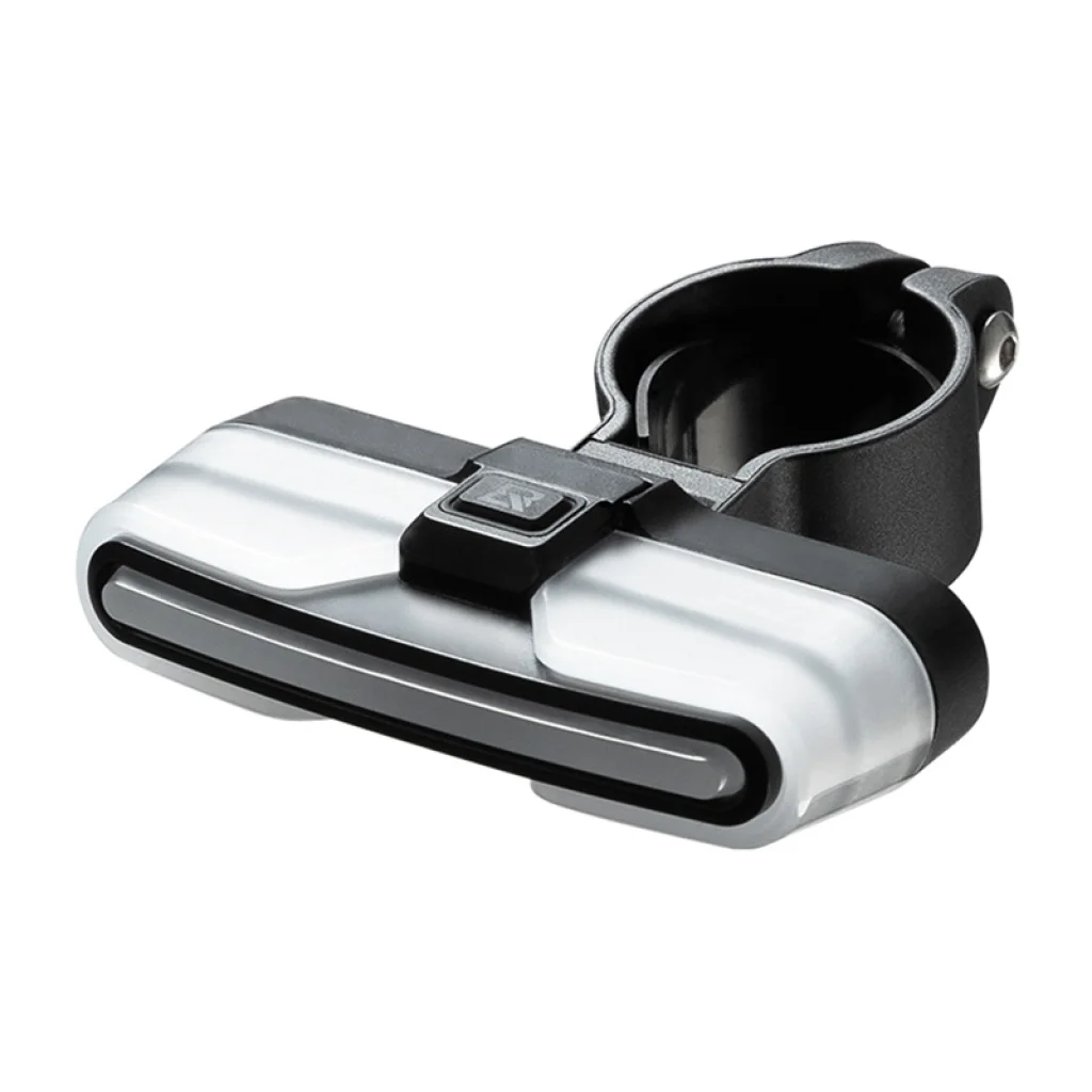 A beépített 500 mAh (lámpa) és 240 mAh (távirányító) akkumulátorok USB-C porton keresztül tölthetők. A LED kijelzők jelzik az energia megújulásának előrehaladását, és amikor az befejeződött, folyamatos fényben ragyognak. A lámpa esőálló (IPX6), így zord időjárási körülmények között is jól teljesít. A felszerelés a nyeregcsőre vagy a nyereg alá lehetséges - a szükséges tartókonzolokat mellékeljük.