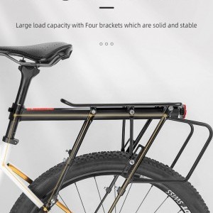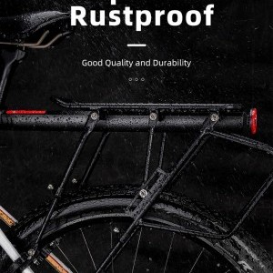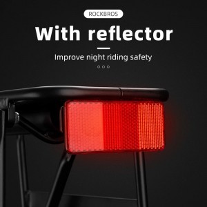 Rockbros 33210004001 biciklitartó polccal - fekete Emeld a kerékpáros kalandjaidat új szintre a Rockbros 33210004001 tartóval, amely egyesíti az alumínium konstrukció eleganciáját, a beépített hátsó lámpa innovációját a fokozott biztonság érdekében, és az öt támasztópont biztosította páratlan stabilitást. Ez a termék több, mint egy csomagtartó - a kényelem és a biztonság garanciája minden útvonalon. Specifikáció:- Márka: Rockbros