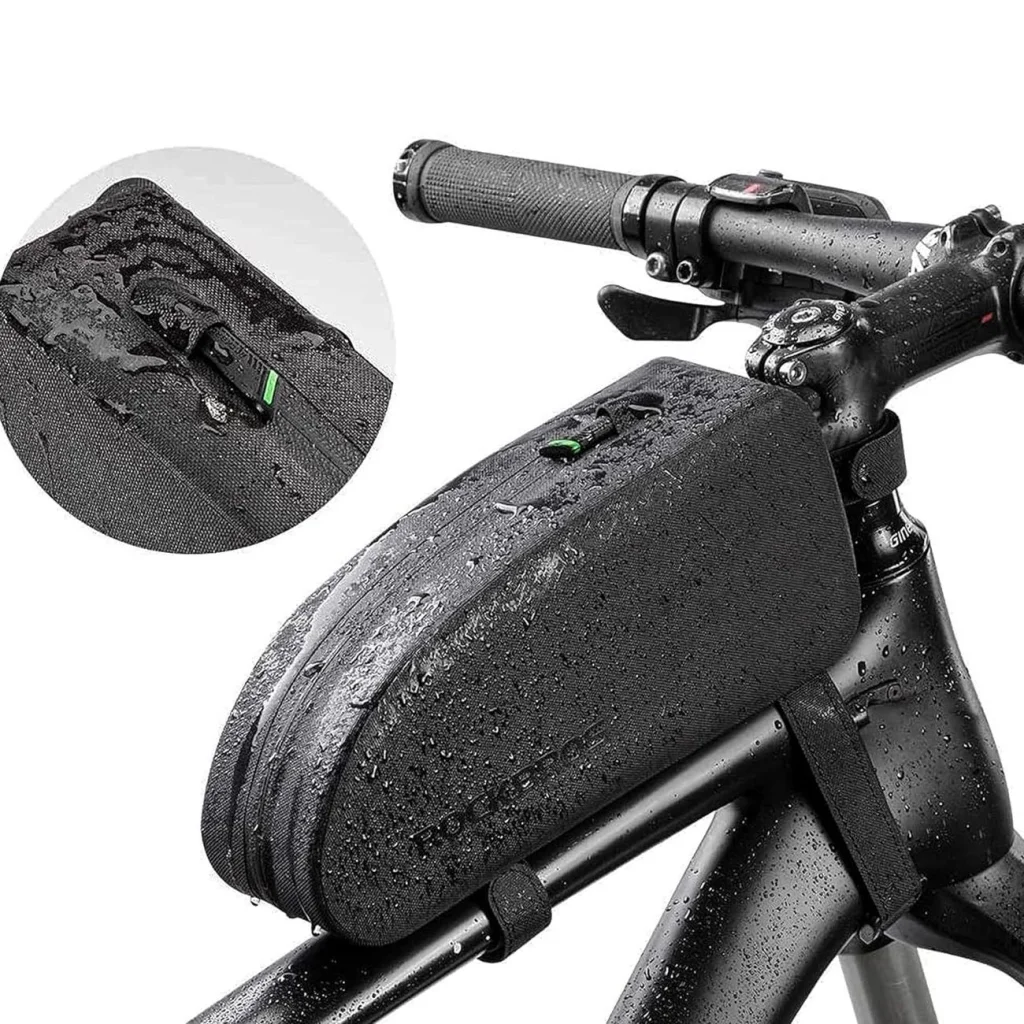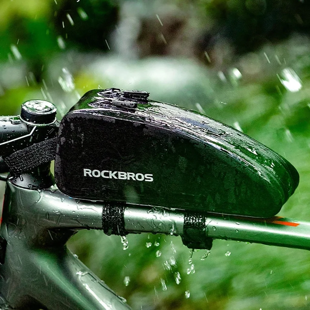 Nem kell többé aggódnia az eső vagy a nedves felületek miatt. A Rockbros AS-019 kerékpártáska vízálló TPU anyagból készült, és varrat nélküli cipzárral rendelkezik. Ennek köszönhetően a dolgai még esőben is szárazak maradnak.