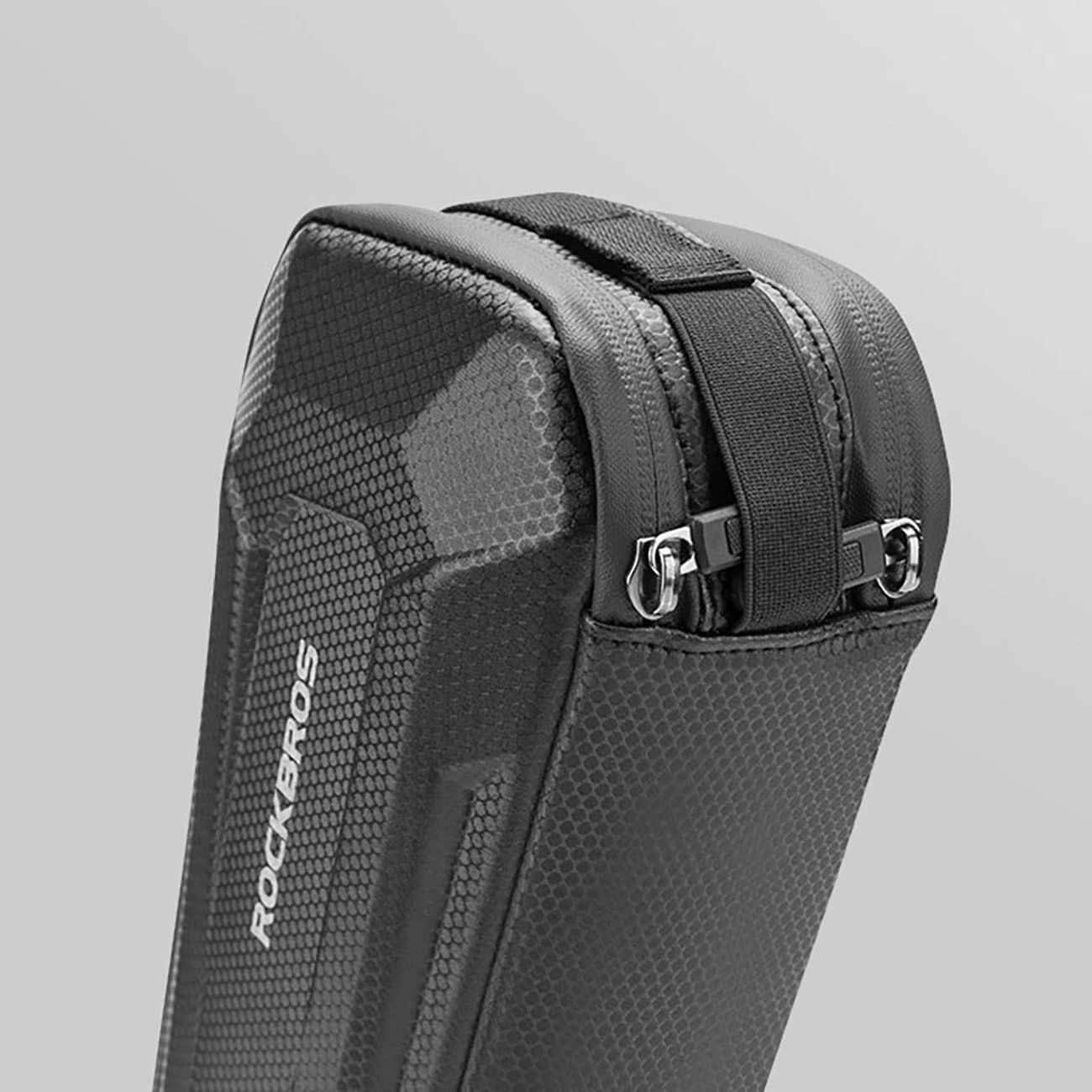 Fedezd fel a kényelmet és a funkcionalitást a Rockbros B66 kerékpártáskával, amely tökéletes megoldás azok számára, akik értékelik a praktikusságot és a stílust minden utazás során. 3 erős pánt tépőzárral lehetővé teszi a stabil rögzítést a kerékpár vázára. A keményített, vízálló anyag garantálja a tartalom védelmét a kedvezőtlen időjárási körülmények ellen. A krossz- és MTB-kerékpárokkal való univerzális kompatibilitása minden kerékpáros számára kiváló választássá teszi. Az 1,5 literes kapacitás lehetővé teszi a szükséges kiegészítők tárolását. A fényvisszaverő logó növeli a biztonságot, mivel javítja a láthatóságot a sötétben.