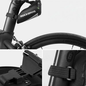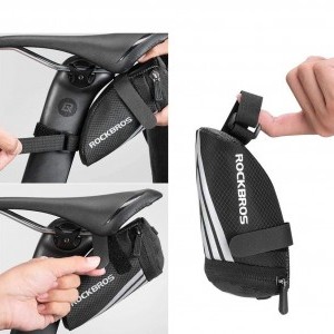 A Rockbros C28 kerékpártáska praktikus kiegészítő minden kerékpáros számára. Gyors telepítést kínál tépőzáras pántok segítségével. Keményített és vízálló anyagból készült. További fényvisszaverők növelik a vezetés biztonságát a sötétben. Könnyű és nem foglal sok helyet, de elfér benne a pénztárca, kulcsok, zseblámpa vagy telefon.
