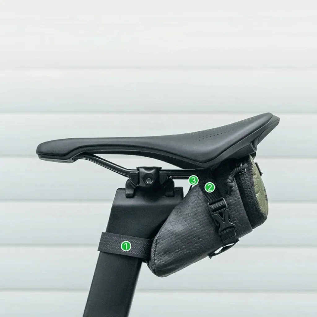Egyszerű ülés alatti rögzítés: A tépőzáras záródás lehetővé teszi a táska gyors és kényelmes rögzítését, így könnyen felszerelhető a kerékpárra további szerszámok nélkül.