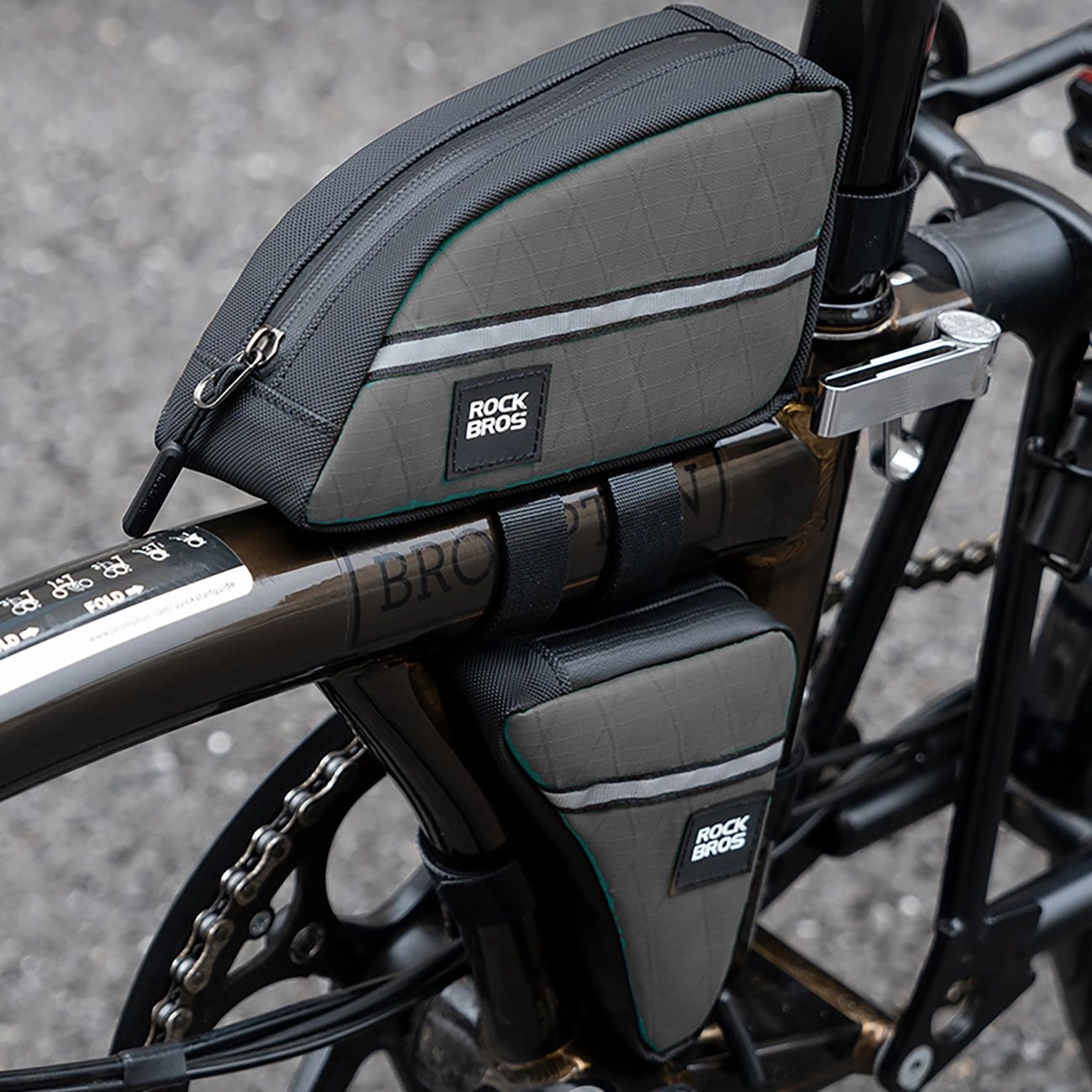 A Rockbros háromszög alakú táska funkcionális és stílusos megoldás minden kerékpáros számára, aki értékeli a kényelmet és a rendszerezést biciklizés közben. A kompakt kialakítás tökéletesen illeszkedik a kerékpár vázához, minimalizálva a lábakkal való érintkezést, és nem zavarja a pedálozást. Kis mérete ellenére meglepően nagy kapacitást kínál, 0.8 literes, és a bővíthető kialakításnak köszönhetően könnyen elférnek benne a legszükségesebb kiegészítők. A cipzár gyors hozzáférést biztosít a tartalomhoz, ami rendkívül praktikus menet közben. Az út végén a táska lecsatolható és kézi táskaként hordható – ideális sétához vagy vásárláshoz. A zöld szín karaktert ad, és tökéletesen illik bármilyen stílusú kerékpárhoz. Ez egy univerzális és stílusos megoldás minden útra.