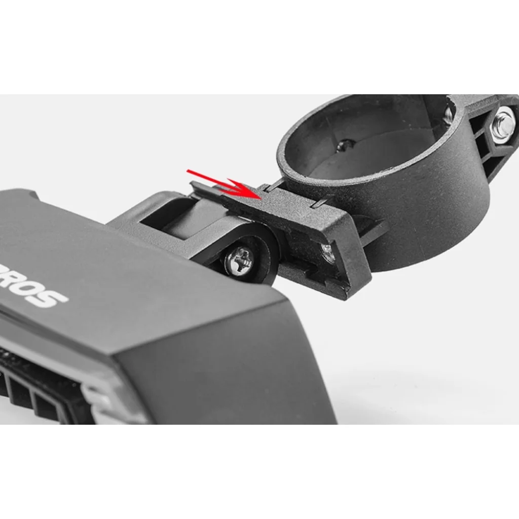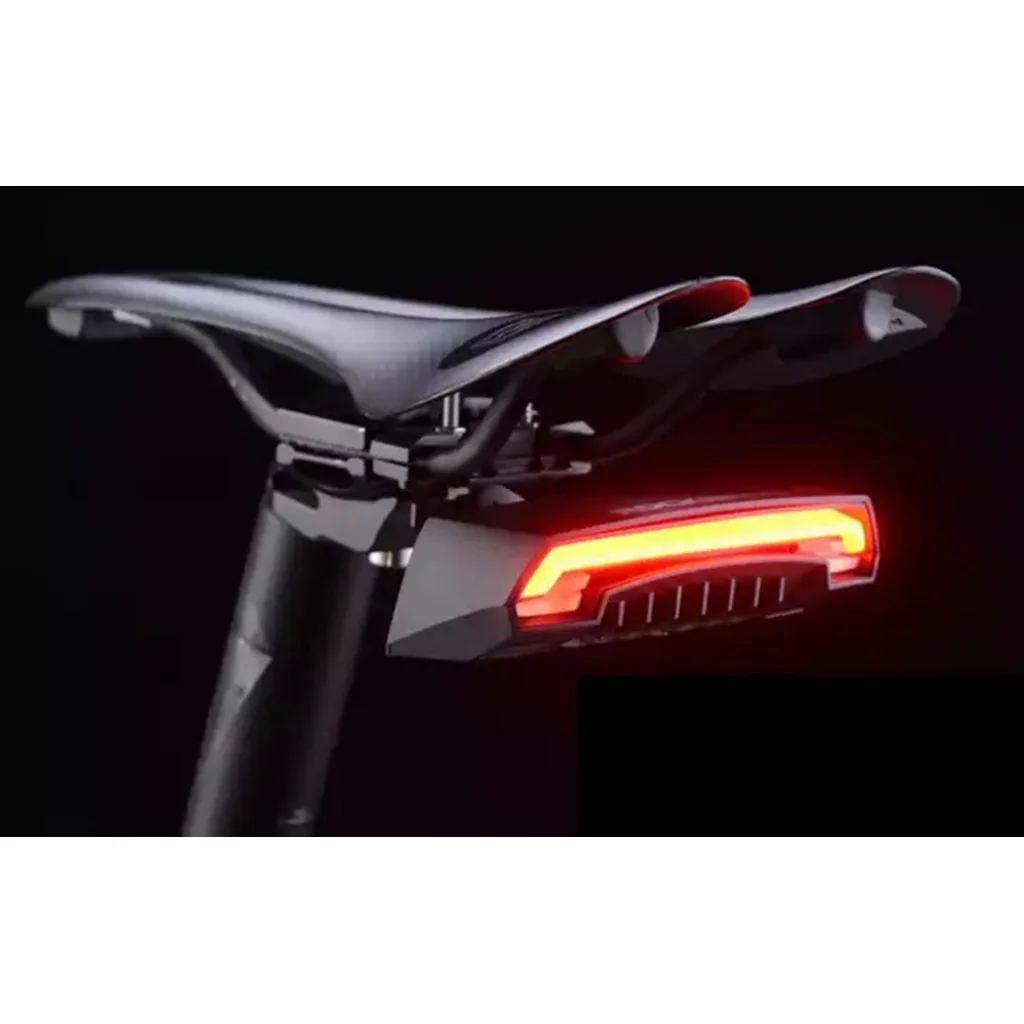 A Rockbros LKWD-R1 kerékpáros hátsó lámpa hármas jelzőrendszerrel van felszerelve - féklámpa, irányjelző és 2 párhuzamos lézervonal. Az általuk kibocsátott, akár 5 méteres hatótávolságú vörös lézersugár kijelöli a biztonságos vezetési zónát, növelve a kerékpáros láthatóságát sötétedés után és nehéz útviszonyok között. A lámpa dinamikus irányjelző rendszert használ, amely egy perc múlva, egyszeri megnyomás után automatikusan visszatér az egyenes irányú üzemmódba. Az IPX4-es vízállóság biztosítja a megbízhatóságot.