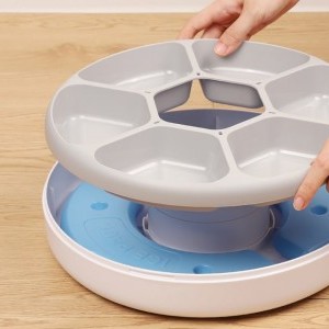 Funkcionalitás a mindennapi használathoz: A készülék 3 AA elemmel működik (nem tartozék), és akár 180 napig is üzemel egyetlen elemkészlettel. Kompakt méreteinek (31 × 31 × 8,8 cm) és csúszásmentes párnáinak köszönhetően az etetőgép bárhol könnyen felállítható, minimalista kialakítása pedig bármilyen belső térbe illeszkedik.