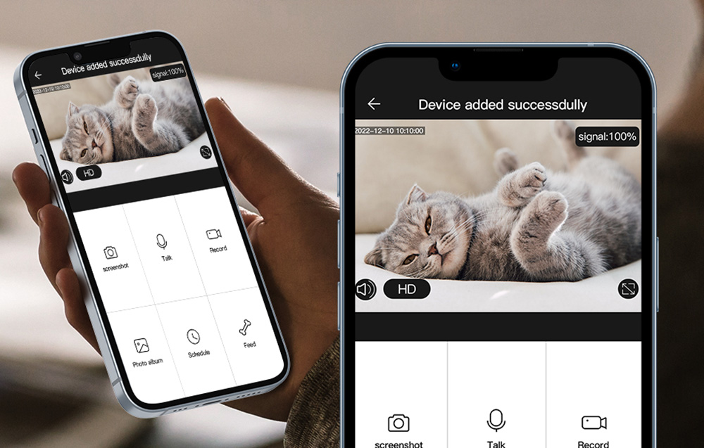 A Rojeco okos kisállat etető Wi-Fi-t használ, 3 literes tartállyal és 720p felbontású, 115°-os látószögű kamerával van felszerelve, amely lehetővé teszi az állatod megfigyelését és fényképek készítését. Így akkor is figyelemmel kísérheted kedvencedet és kapcsolatba léphetsz vele, amikor nem vagy otthon. A beépített hangszóró és mikrofon segítségével parancsokat adhatsz kedvencednek, és akár 10 másodperces hangüzenetet is felvehetsz, hogy étkezéskor bátorítsd őt. Az alkalmazásból szerkeszthető étkezési tervet hozhatsz létre. Az eszközt kétféleképpen lehet táplálni, és egyszerű használni és karbantartani.