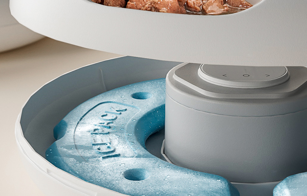 Az adagoló két hűtőbetétet használ az ételek frissen tartása érdekében a nap 24 órájában. Az első 8 órában az adagoló 0°C-on tartja az ételt. Ezt követően továbbra is fenntartja az alacsony tárolási hőmérsékletet. Így akár 24 órán keresztül nem kell aggódnia az ételek minősége miatt. Javasolt azonban, hogy a húsételeket kisállata 4-8 órán belül elfogyassza. A konzervétel viszont az egész nap folyamán fogyasztható.