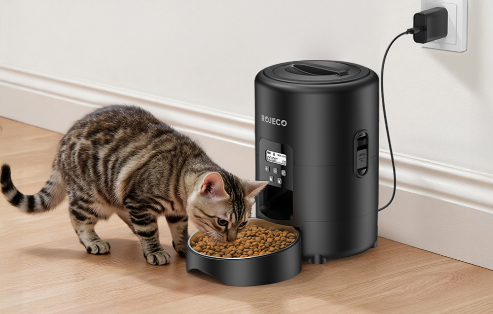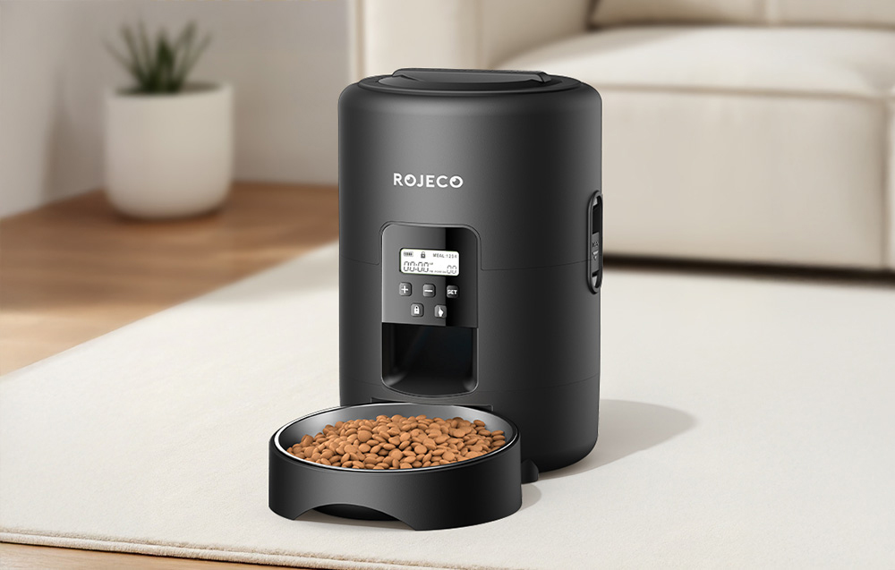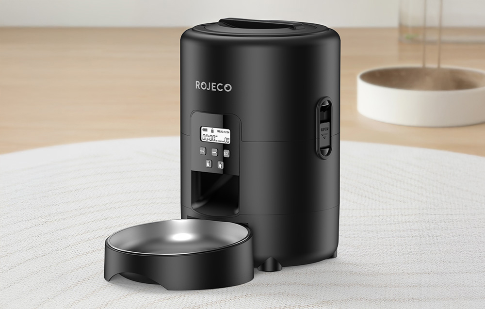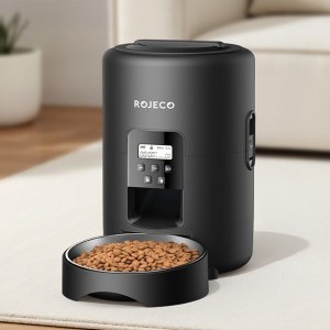 Biztosítson kedvencének egészséges, ízletes eledelt meghatározott időpontokban. A Rojeco 2 literes automata ételadagolója egyesíti magában a napi 1-4 étkezés ütemezését, a pontos adagolást (1-40 adag, egyenként 10 g), a higiénikus 304 rozsdamentes acélból készült tálat, a kétféle energiaellátási lehetőséget, valamint a kényelmes nyomógombos és LED-képernyős kezelést. Az elakadásgátló rendszer biztosítja a zökkenőmentes etetést, a kivehető kialakításnak köszönhetően pedig könnyen tisztítható.