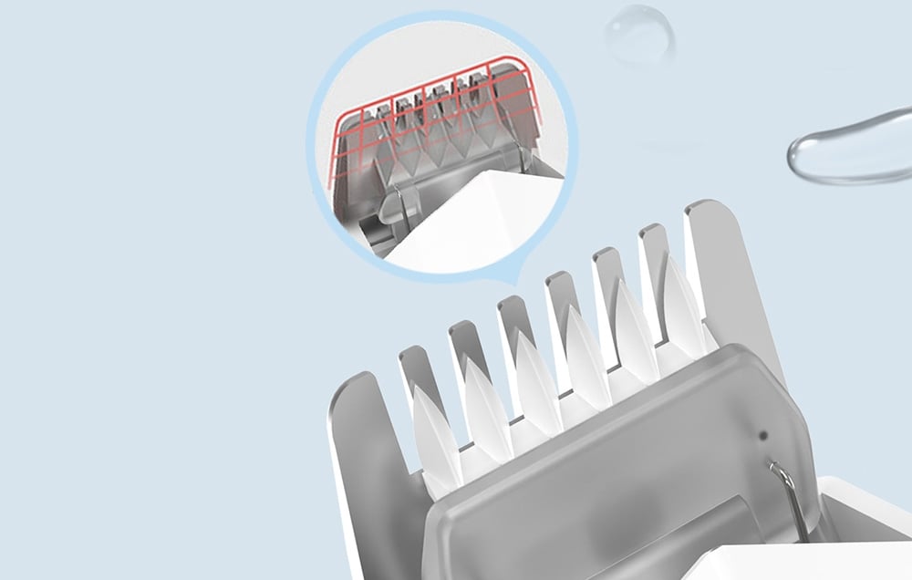Precíz vágás a bőr sérülése nélkül: A speciálisan lekerekített formájú kerámiaacél penge (R-típus) használata kiküszöböli a vágás vagy a bőrirritáció kockázatát. Emellett a kompakt, 9 mm széles fejnek köszönhetően könnyen elérhetők a nehezebben hozzáférhető területek, például a mancsok vagy a szemek körül. A trimmer ezen felül kényelmes és pontos 360°-os nyírást tesz lehetővé, így az ápolás gyors, hatékony és problémamentes.