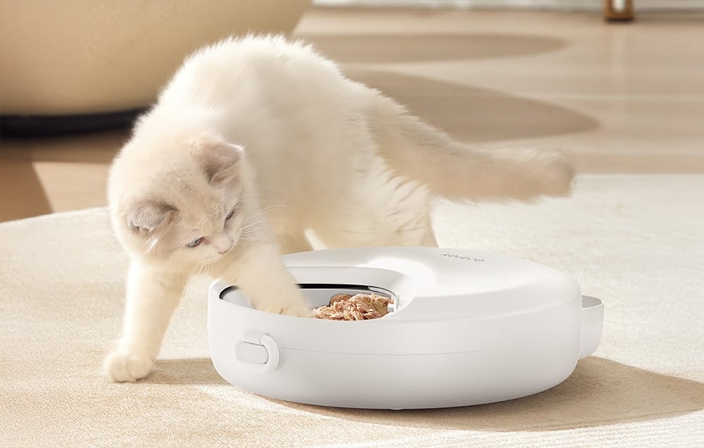 A Rojeco F26 intelligens ételadagoló tökéletes megoldás azoknak a gazdiknak, akik bármikor friss ételt szeretnének biztosítani kedvencüknek. A beépített két hűtőbetétnek köszönhetően az étel akár 24 órán keresztül friss marad, ami különösen fontos a nedves eledelek esetében. A négy, egyenként 240 ml űrtartalmú rekesz lehetővé teszi az ételek pontos adagolását, gondoskodva a kiegyensúlyozott étrendről.