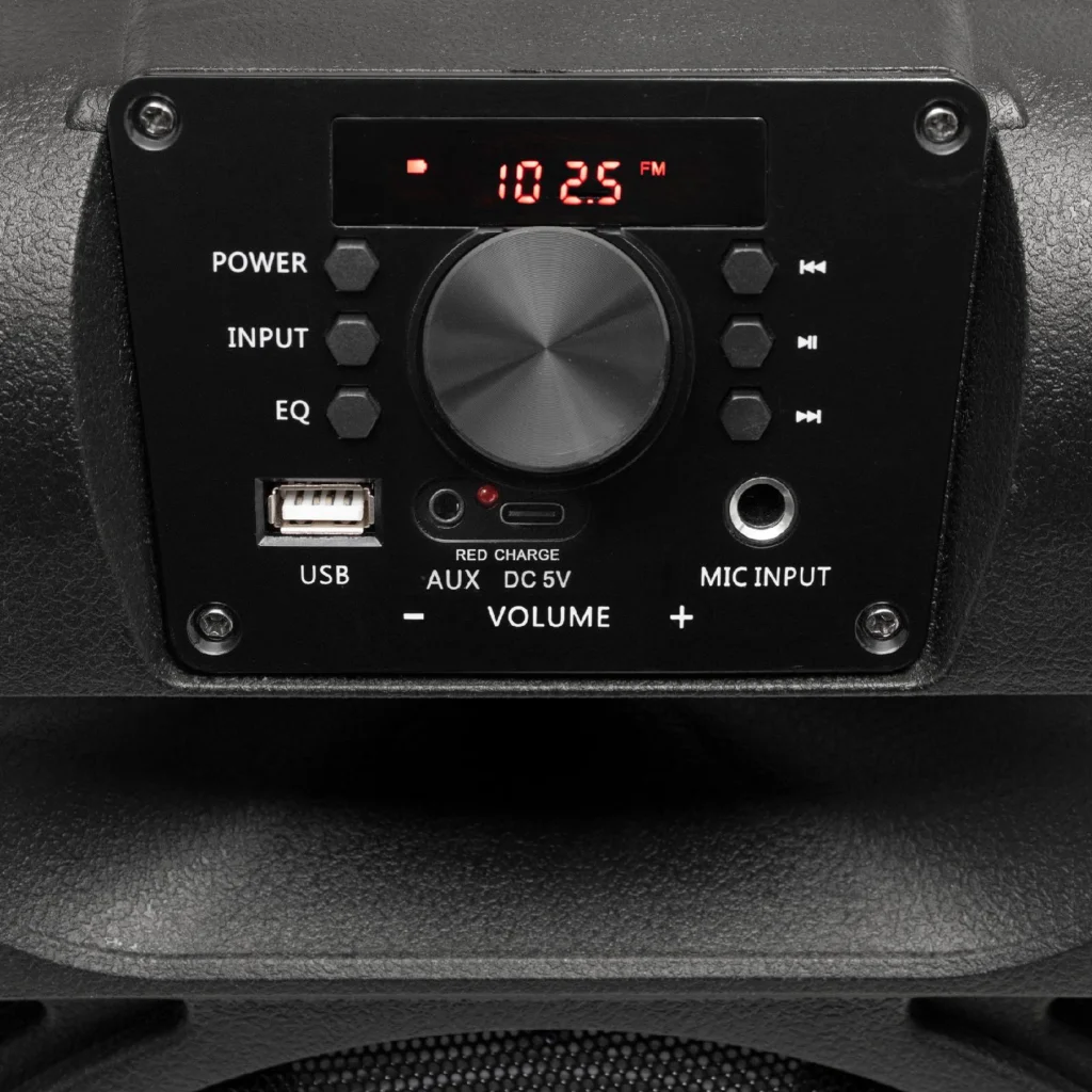 A beépített LED fényeffekt vizuális élményt nyújt, amely tökéletesen kiegészíti a zenét és feldobja a hangulatot. A készülék digitális kijelzője segít az egyszerű kezelésben és az információk gyors megjelenítésében, legyen szó a lejátszási módról, rádióállomásokról vagy az akkumulátor állapotáról.