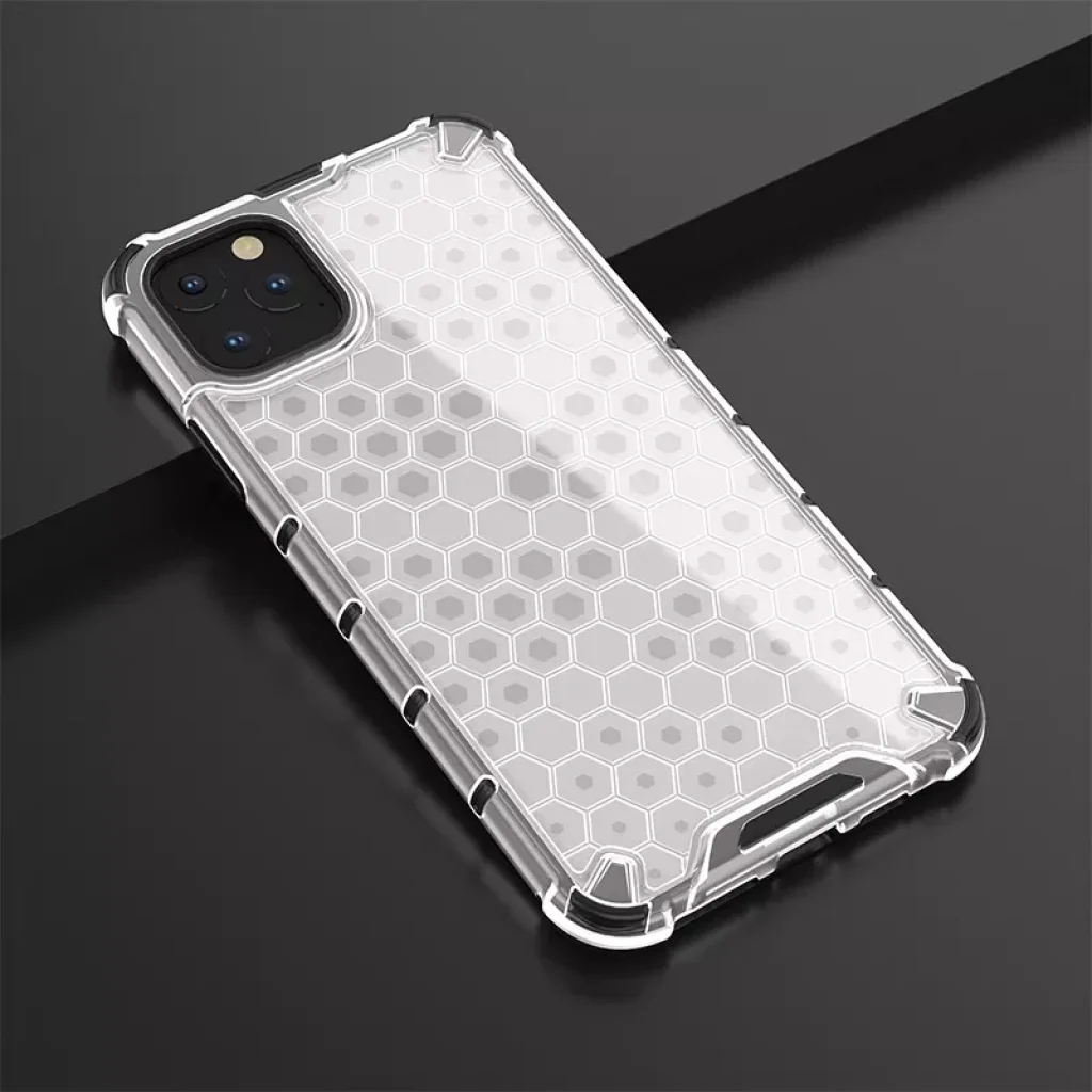 Hybrid anyaghasználatú telefontok méhsejt mintázattal. Megemelt peremei és anyaghasználata fokozott védelmet biztosít a külső behatásokkal szemben. Flexibilis TPU és kemény PC anyaghasználat kombinációja.