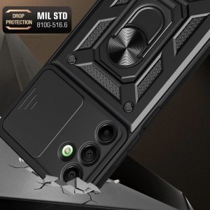 A Camshield Pro tok kiváló védelmet nyújt a teljes készülék számára esések és karcolások ellen. A tok magas minőségű TPU és PC komponensek kombinációja. A rugalmas és ütéselnyelő poliuretán, valamint a tartós és kopásálló polikarbonát megbízható hibridvédelmet alkot az eszköz számára. Egyszerűen és kényelmesen használható csúszka, amely bármikor elrejthető. A praktikus borítás megvédi a lencsét a váratlan sérülésektől. A 360 fokban forgatható gyűrű kiválóan alkalmas filmtartóként, ujjgyűrűként, hogy biztonságosan tarthasd a telefont a kezedben, sőt, akár mágneses autós tartóhoz is rögzíthető.