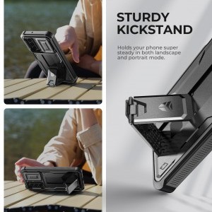 - Stabil kitámasztó: A hátlapon található, robusztus kitámasztó rendkívül stabilan tartja telefonját, legyen szó álló vagy fekvő módról. Ez a funkció tökéletes videónézéshez, videóhívásokhoz vagy böngészéshez anélkül, hogy kézben kellene tartania a telefont.