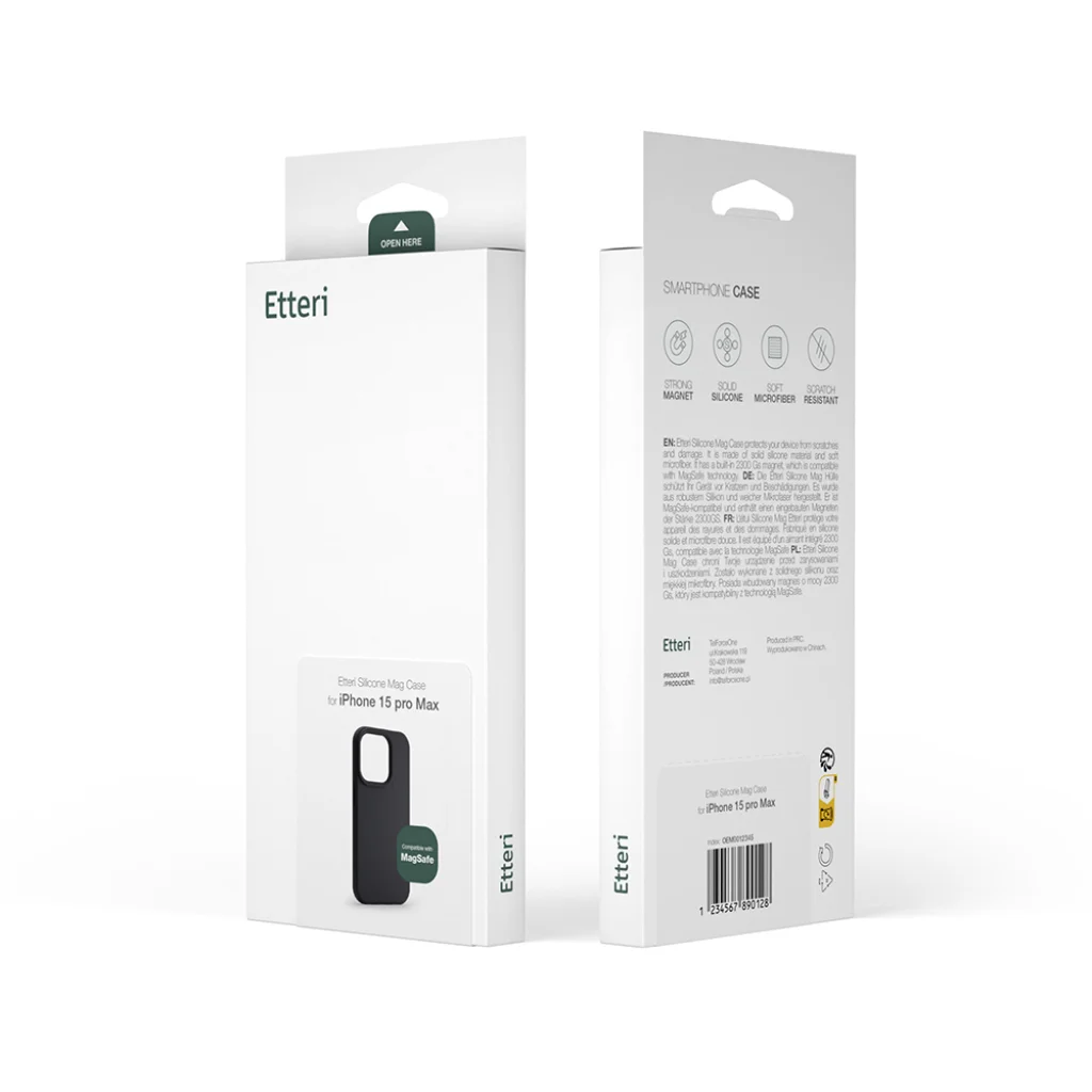 A magas minőségű Etteri Silicone Mag tok kompatibilis a MagSafe-szal, megbízható telefonvédelmet biztosít. Precíz tervezés, amely megfelel a legmagasabb szabványoknak, elegáns megjelenést és maximális funkcionalitást kínál.
