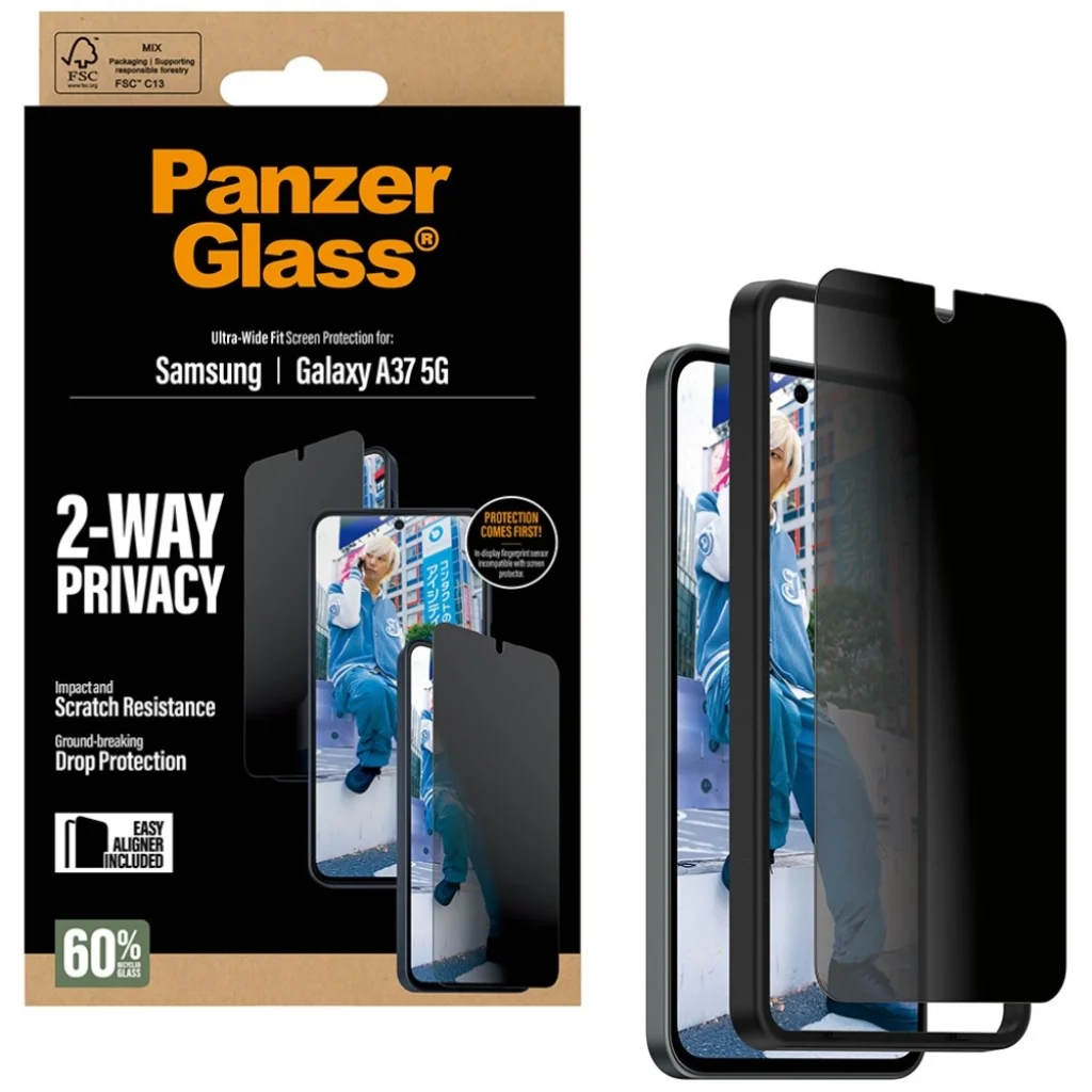 Vigyázz személyes adataidra a PanzerGlass® Privacy Ultra-Wide Fit segítségével – ez egy olyan védőüveg, amely egyesíti a biztonságot és az eleganciát. A 60%-ban újrahasznosított üvegből készült környezetbarát megoldás hatékonyan védi a kijelzőt, miközben óvja a magánszférádat is. A speciális adatvédelmi szűrő gondoskodik arról, hogy a kijelző tartalma csak számodra legyen látható – a melletted ülők a vonaton, egy kávézóban vagy az irodában csak egy elsötétített felületet látnak. Tökéletes választás, ha nyilvános helyen is diszkréten szeretnéd használni a telefonodat.