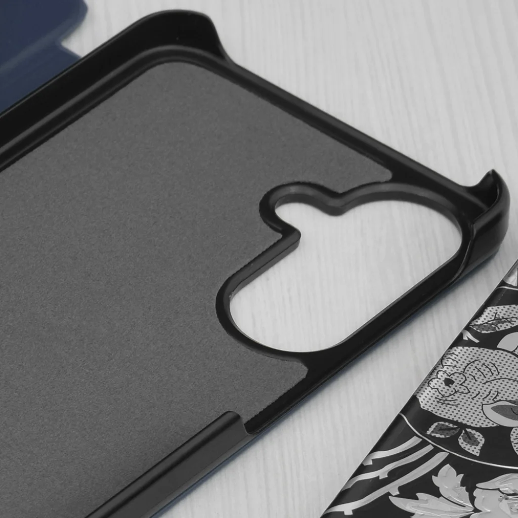 A sötétkék színű, elegáns design tökéletesen illeszkedik a Samsung Galaxy A37 5G modern megjelenéséhez. A külső felület texturált, prémium tapintású műbőrből készült, mely nem csak esztétikus, de kellemes fogást is biztosít. A tok belső része puha béléssel van ellátva, amely kíméletesen védi a telefon hátlapját a karcolásoktól és a portól.