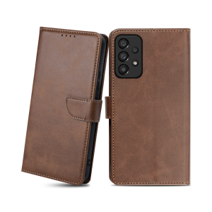 Samsung Galaxy A53 5G mágneses PU bőr fliptok kártyatartóval sötétbarna Alphajack