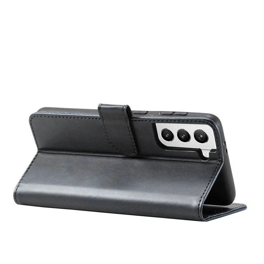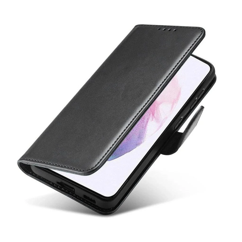 Samsung Galaxy S22 Plus mágneses PU bőr fliptok kártyatartóval fekete Alphajack