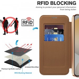 - Biztonságos kártyatartó RFID védelemmel: A tok előlapjában kialakított praktikus kártyatartó rekeszekben biztonságosan tárolhatja bankkártyáit vagy személyi igazolványait. A beépített RFID blokkoló technológia hatékonyan megvédi adatait az illetéktelen leolvasástól és a digitális zsebtolvajlástól.