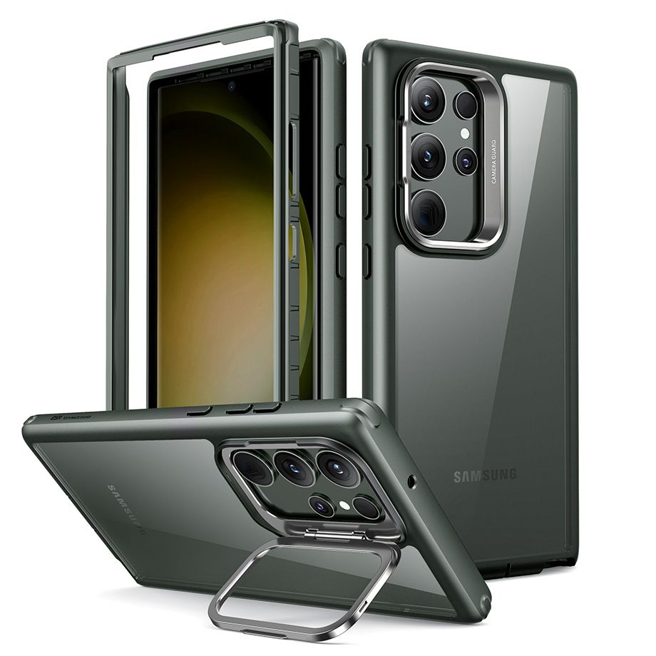 A Kickstand tok magas szintű védelmet biztosít, és tökéletesen kiemeli okostelefonja eredeti megjelenését. A tok PC-ből és akrilból készült merev és kemény hátlap, valamint a sarkokban megerősített puha TPU keret kombinációja. A tok az alapfelszereltségű, a lencsék körüli megemelt borításon túl egy fém, nyíló kerettel is fel lett szerelve, mely könnyen átalakítható funkcionális állvánnyal. Gombok fedelével és kivágásokkal rendelkezik a portokhoz. A tok tökéletesen illeszkedik, és nem korlátozza a vezeték nélküli töltés lehetőségét.