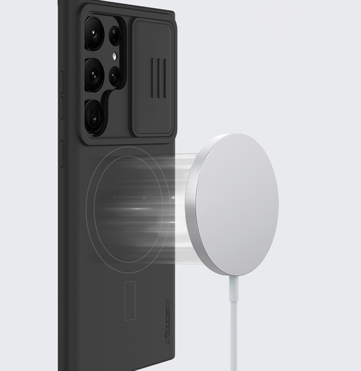 Samsung Galaxy S23 Ultra Nillkin CamShield Silky Magsafe kompatibilis szilikon tok fekete
