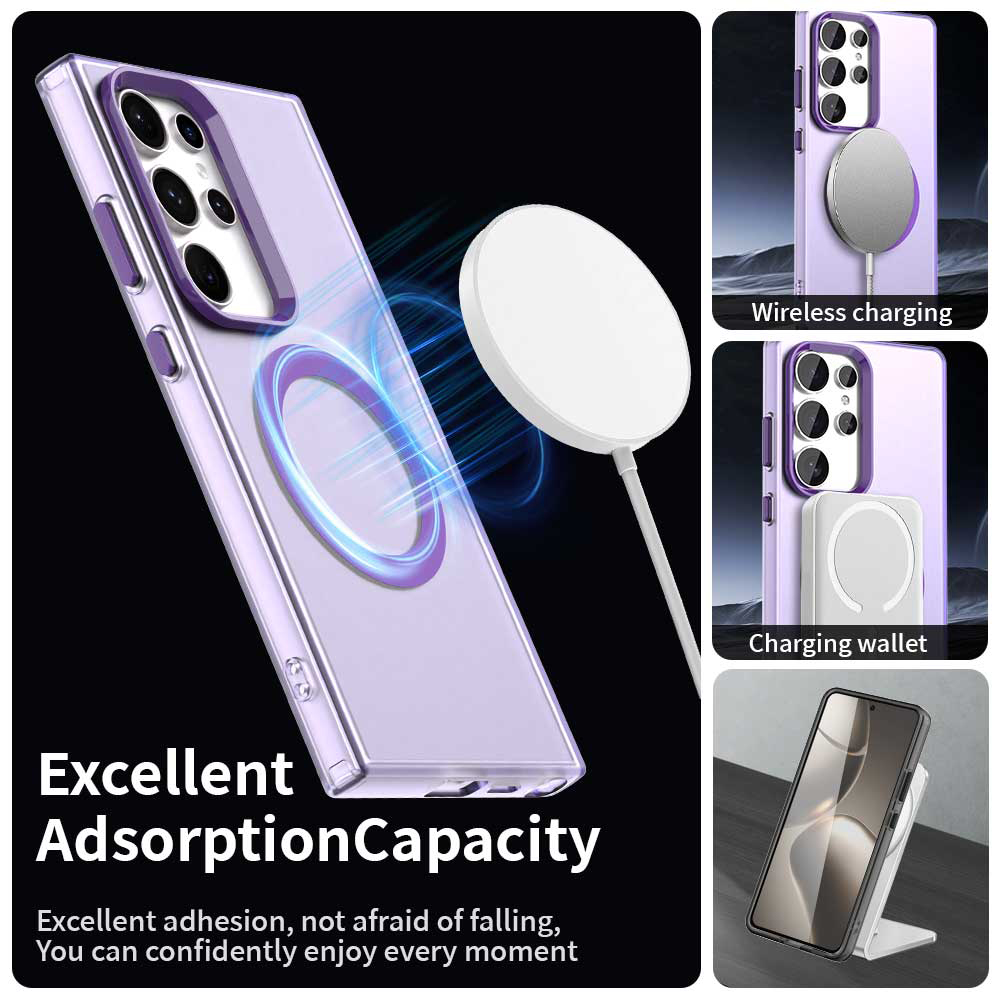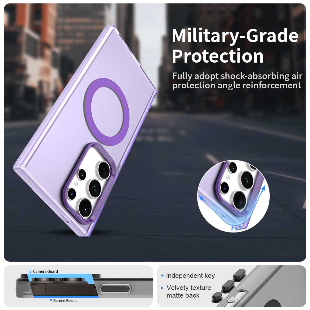 Ez a tok tökéletes választás azok számára, akik maximális védelmet, modern MagSafe funkcionalitást és elegáns, átlátszó dizájnt keresnek lila színben Samsung Galaxy S23 Ultra készülékükhöz. Élvezd a stílust és a biztonságot egyetlen termékben!