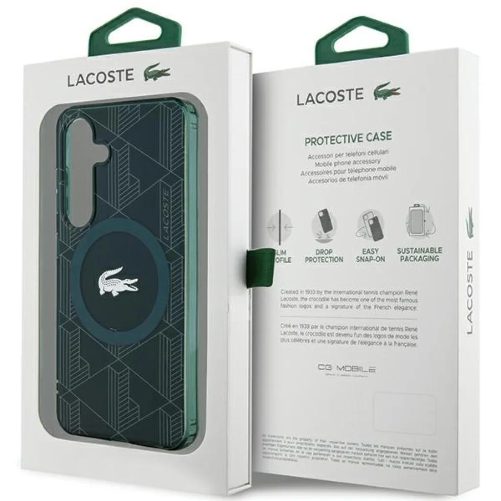 A Lacoste egy jól ismert és elismert francia márka, amely az elegáns sikk és a sportos kényelem kombinációjáról híres. Az IML Blend Monogram MagSafe kollekció a legújabb motívumot kínálja, amelyet jelenleg a márka számos projektjében használnak. Az egyedi monogram motívum, amelyet a tok hátoldalán alkalmaznak, rendkívül jellegzetes, lehetővé téve, hogy világszerte megjelenítse egyedi stílusát. Az IML Blend Monogram MagSafe kollekció tökéletes választás, ha divatos kiegészítőket és kifinomult megjelenést értékel. A kollekció további díszítése a jellegzetes kis krokodil logó, amely a márka világszerte ismert szimbóluma. A logó központi helyen, a gyűrű közepén található, így a telefon e tokban való viselése még feltűnőbbé válik. E kicsi részlet szintén az eredetiség és a kollekció kiváló minőségének megerősítése.