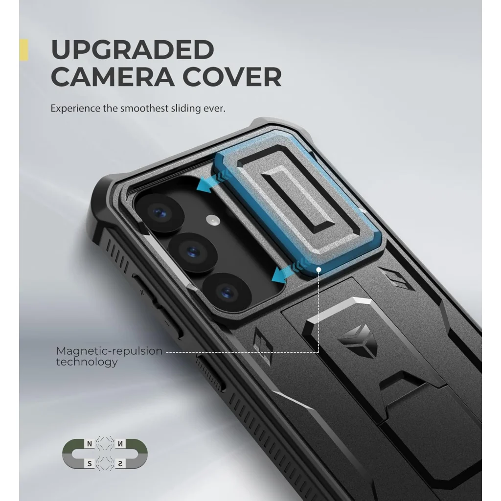 Továbbfejlesztett kameravédelem: Tapasztalja meg a legsimább csúsztatást a továbbfejlesztett, mágneses taszítási technológiával készült kamerafedéllel. Ez a porálló csúszka teljes mértékben védi a kamera lencséit a karcolásoktól és a szennyeződésektől, miközben rendkívül egyszerűen és kényelmesen kezelhető.